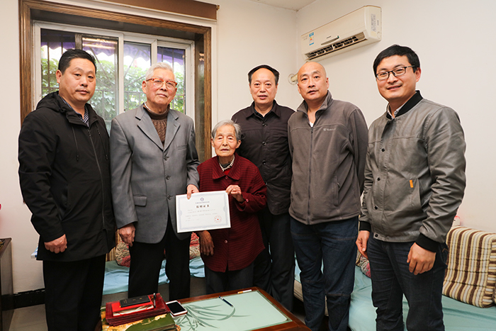时乾代表学校向两位老同志敬呈了《易游官方网站_易游(中国)股份有限公司,校史馆捐赠证书》,祝福两位老同志健康长寿,生活愉快,相约建校70周年校庆。