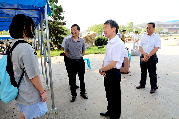学生返校牵动着校领导的心,上午9时许,校党委书记蒋德勤,党委副书记、校长李震,党委委员、副校长黄远友在有关部门负责同志陪同下全面检查学生返校工作。在各学院学生报到点,校领导详细了解第一批学生返校及防疫物资准备情况,要求各学院本着安全第一的原则精心为返校学生做好服务工作。在学生食堂,校领导认真检查消毒清洁工作,详细了解菜品供应和学生错峰就餐安排情况;在学生宿舍,校领导与刚返校的学生亲切交谈,关切的询问同学们在家期间学习生活情况,热烈欢迎同学们安全返校。校领导对返校报到各项工作表示肯定,要求各部门、各学院继续高度重视疫情防控工作和学生返校工作,及时发现问题,迅速整改落实;关注学生思想动态,做好各类学生的跟踪管理服务;认真思考谋划,统筹做好疫情防控和教育教学工作,确保学生生命安全和身心健康。
