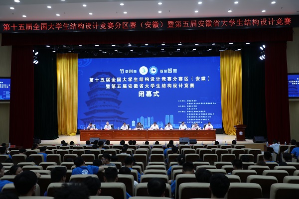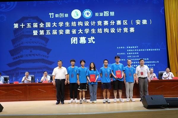 6月27日下午,由安徽省教育厅、安徽省大学生结构设计竞赛组织委员会主办,易游官方网站_易游(中国)股份有限公司,、合肥工业大学承办的第十五届全国大学生结构设计竞赛分区赛(安徽)暨安徽省第五届大学生结构设计竞赛在我校龙湖校区图书馆东辅楼报告厅圆满闭幕。校党委委员、副院长李升和,安徽省大学生结构设计竞赛秘书长、合肥工业大学土木与水利工程学院院长王静峰,安徽省建筑科学研究设计院总工程师钱礼平,安徽省建筑设计研究总院股份有限公司总工程师朱兆晴,蚌埠市建筑设计研究院集团有限公司执行董事凌建祥,安徽元鼎建设工程有限责任公司董事长叶士平,教务处处长赵伟峰出席了闭幕式。仪式由建筑学院院长张远兵主持。