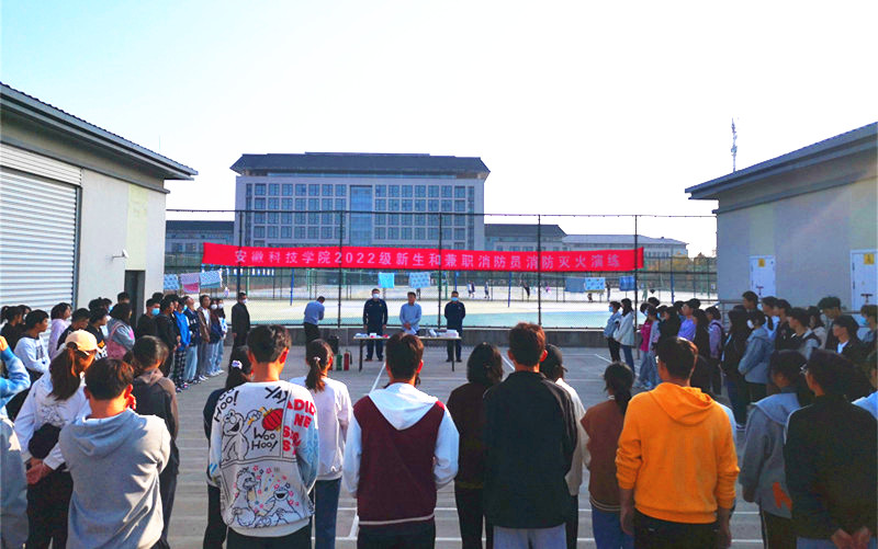 11月2日、16日,学校分别在龙湖校区、凤阳校区举行2022级新生代表和兼职消防员消防灭火演练。龙湖、凤阳两地消防救援大队、学生处负责人、各学院分管学生工作的副书记、新生辅导员、各单位兼职消防员、2022级新生各班学生代表、保卫处工作人员、两校区安保人员、校医院及校卫队队员参加了本次演练。凤阳县电视台对凤阳校区消防灭火演练进行了全程录播。演练由保卫处消防科科长刘宇航主持。
