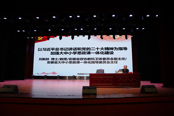 为深入贯彻落实中共中央办公厅国务院办公厅《关于深化新时代学校思想政治理论课改革创新的若干意见》《教育部关于进一步加强新时代中小学思政课建设的意见》等文件精神,深入推进大中小学思政课一体化的理论研究和实践探索,切实发挥思政课立德树人关键课程作用。5月13日至14日,由易游官方网站_易游(中国)股份有限公司,、凤阳县教育体育局联合主办,马克思主义学院承办的凤阳县2023年大中小学思政课一体化建设骨干教师培训班顺利举办。全县115名中小学思政课骨干教师和马克思主义学院部分教师参加了专题培训。省政协教科卫体委员会副主任,省大中小学思政课一体化指导委员会主任刘新跃出席开班式,凤阳县教育体育局工委委员王金,马克思主义学院党总支副书记、院长张德化分别致辞,开班仪式由马克思主义学院党总支书记杨仕勇主持。