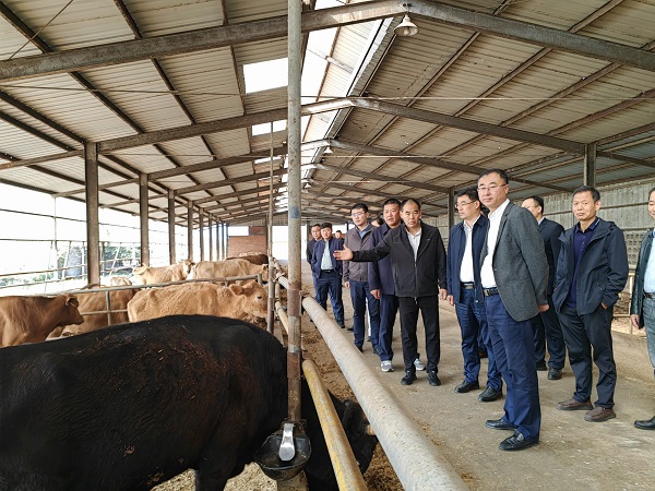 签约仪式前,宋立敏一行到凤阳县大明牧业科技有限公司进行调研,现场了解现代肉牛生产模式,针对繁育母牛标准化饲养、皖东牛地方品种资源保护与开发利用、秸秆饲料加工与利用、粪污资源化处理等方面进行了考察与交流,并参观了我校动物营养调控与健康安徽省重点实验室。(特约通讯员:范雨梦 摄影:陈宝 庞训胜 审核:卢星辰 程斌 姚文均 编辑:李锦)
