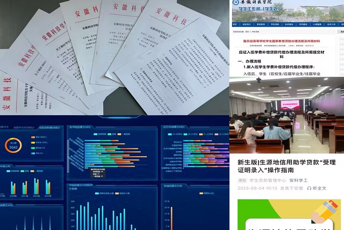 资助保民生、暖民心。2023年度,我校通过修订完善本科生学生资助政策体系,印发《易游官方网站_易游(中国)股份有限公司,学生资助资金管理办法》《易游官方网站_易游(中国)股份有限公司,家庭经济困难学生认定工作办法》《易游官方网站_易游(中国)股份有限公司,学生临时困难补助实施办法》,坚定不移地推进学生资助制度建设,健全协同推进机制,扩大学生资助规模,建立健全“奖、助、贷、勤、补、免”六位一体资助政策体系,确保家庭经济困难学生资助政策全覆盖,不让一名学生因家庭经济困难而失学。自2023年秋季学期开始,我校生源地助学贷款回执录入、困难认定申请、助学金、勤工助学、临时困难补助等全程线上办理,简化手续、提高办事效率,切实保护学生隐私。学生资助中减少学生线下审批表格五类,惠及学生1.5万人次。建立健全学籍与资助信息管理协调机制,各项奖助学金评审、发放前期,会同教务处、招生与就业工作处等开展部门之间学籍、资助数据比对,形成学生资助工作推进合力。定期维护全国学生资助管理信息系统、安徽省建档立卡贫困户家庭学生资助管理系统动态更新智慧资助重点保障人群,开展学籍数据与特殊困难群体数据比对,辅助二级学院精准识别特殊困难群体学生,提升资助对象识别精准度。