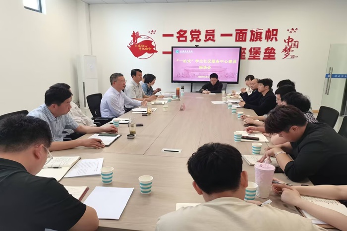 4月28日上午,校党委副书记曹付忠在龙湖校区实地调研“一站式”学生社区服务中心建设,召开座谈会广泛听取二级学院师生、相关职能部门意见建议。党委学工部、教务处、保卫处、招生与就业工作处、团委等职能部门负责人,龙湖校区二级学院党委副书记、辅导员以及学生代表参加调研座谈。