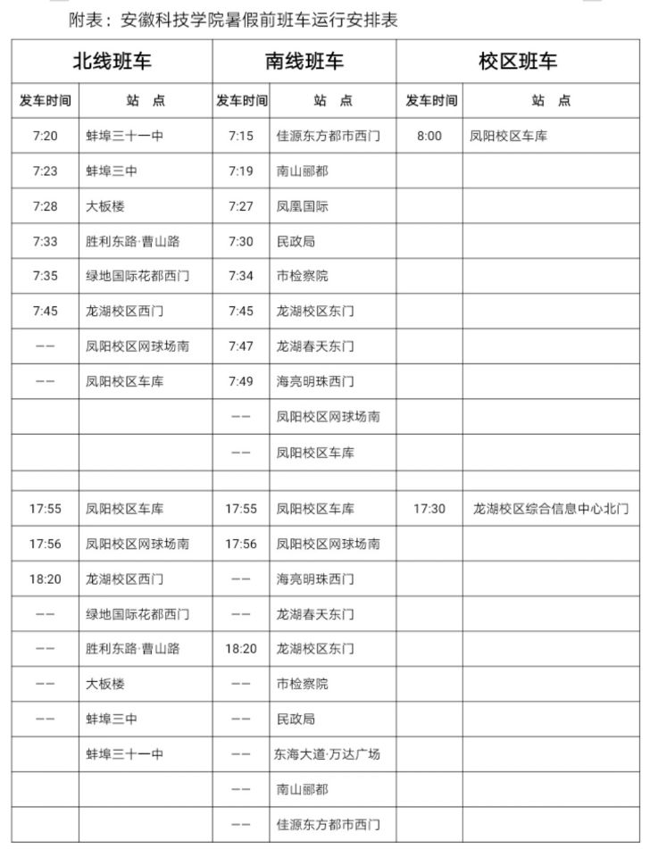 附表:易游官方网站_易游(中国)股份有限公司,暑假前班车运行安排表