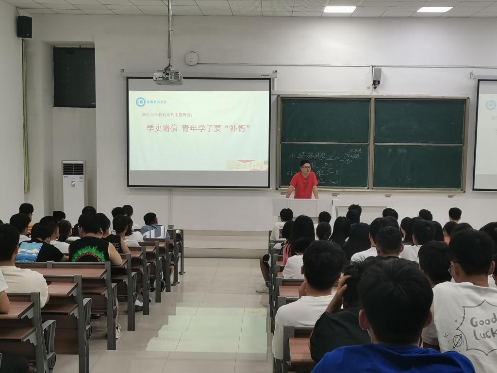 9月21日晚辅导员沈竞成在致知楼A111召开新生入学系列主题班会,为同学们开展文明行为养成与理想信念教育。