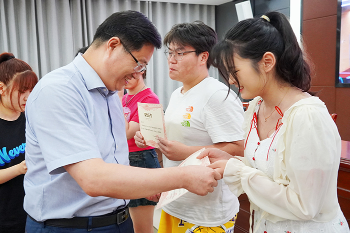 会上,新媒体中心副主任董书桓代表新媒体中心作学年工作总结。新媒体中心指导老师李刚宣读了表彰决定。出席会议的领导、老师分别为新媒体中心获评2021-2022学年“先进工作者”“先进个人”称号的同学颁发荣誉证书以及奖品。两个校区的获奖学生代表章思佳和胡文静分别作交流心得发言。