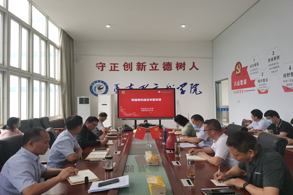 为深入学习贯彻习近平总书记关于教育的重要论述,坚持把师德师风作为评价教师队伍素质的第一标准,努力打造一支“四有”好老师队伍,根据学院主题教育工作安排,6月7日下午,学院理论学习中心组在学院学术交流中心开展专题党课活动,学院党总支书记杨仕勇主持,全体党员教师参加。