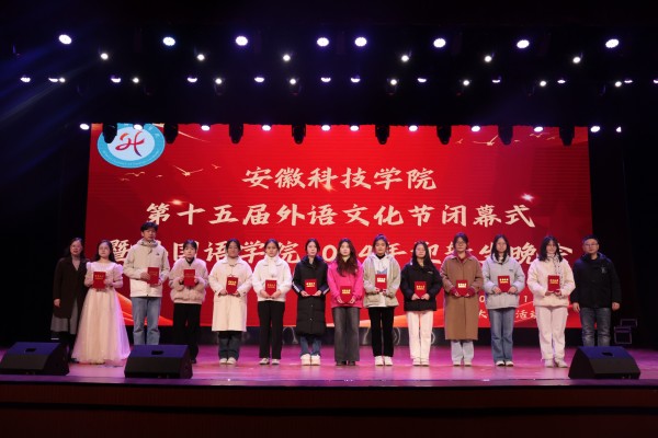 在晚会进行过程中,还举行了颁奖仪式。外国语学院院长刘萍,党委书记蔡为青共同为2024年“外研社·国才杯”“理解当代中国”全国大学生外语能力大赛校内选拔赛获奖学生颁奖;外国语学院副院长邓兆红,副书记张海亮为校第十五届外语文化节各项比赛中取得优秀成绩的个人和团队颁奖。