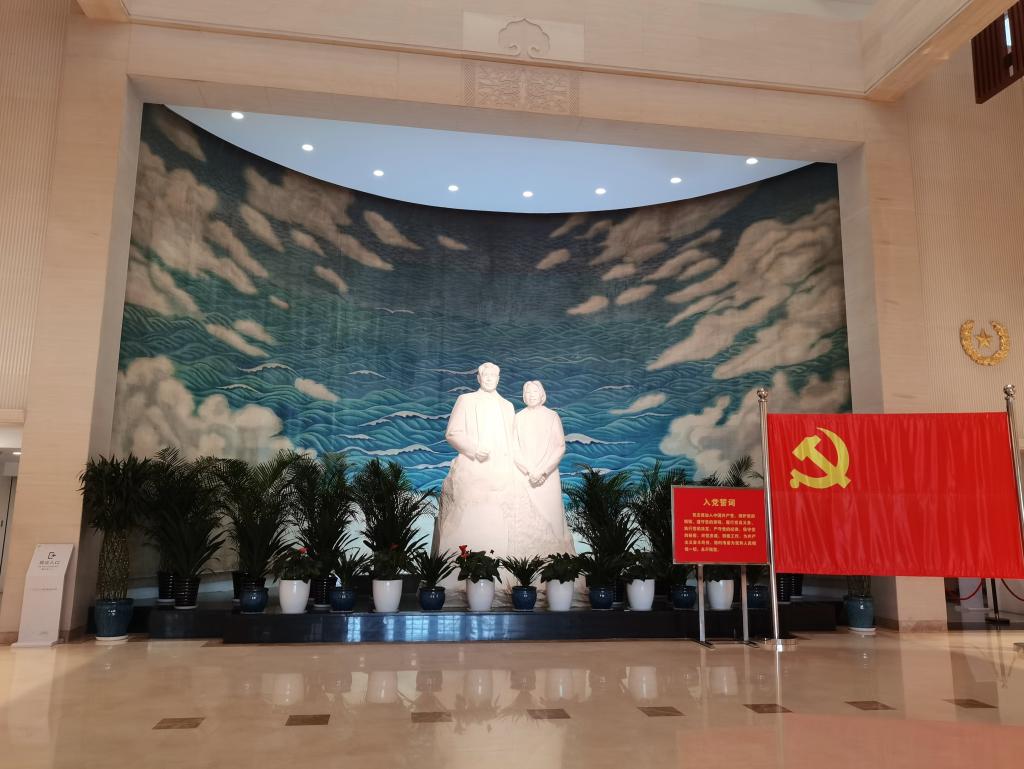 周恩来邓颖超纪念馆展厅包括瞻仰厅、生平厅、情怀厅等。来到纪念馆的瞻仰厅,看着大厅正中耸立汉白玉雕像,张俊玲肃然起敬,这汉白玉雕像是周恩来邓颖超两位老人的塑像,主雕像的背景是大型壁毯,两侧浮雕墙镌刻出五四运动、南昌起义、红军长征、西安事变和开国大典、祖国建设等历史画面,仿佛跨越了时空隧道,穿越时空之门,将许多年前的战火年代带到了我们面前。