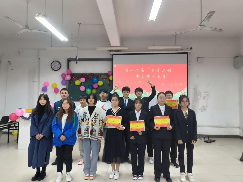 名声荟萃,话茧成蝶,为了丰富同学们的课余生活,营造良好的校园文化氛围,11月9日农学院于新知楼B103举办以“名”声荟萃,“话”茧成蝶为主题的第十二届“金禾工程”之主持人大赛,机械工程学院学生会主席主席团成员崔良鲲、资源与环境学院学生会主席团成员胡其秀、食品工程学院学生会主席团成员朱佳佳、外国语学院艺体中心主任陶冉,农学院学生会主席团成员黄志应邀担任评委。