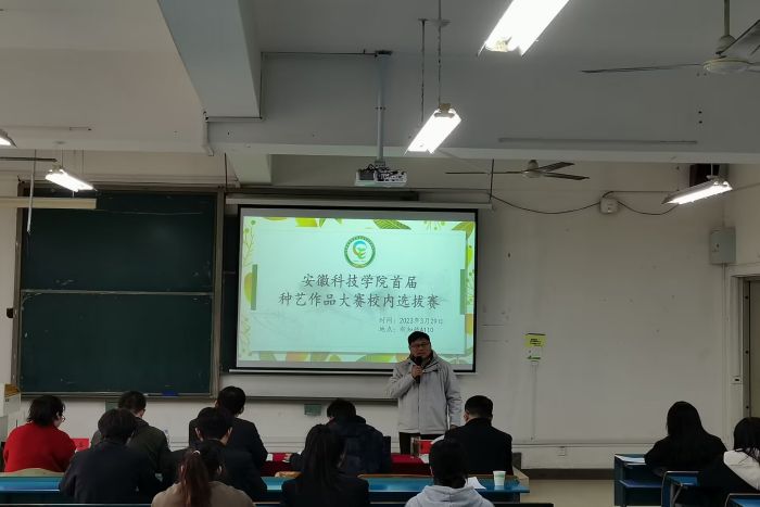 3月29日,“易游官方网站_易游(中国)股份有限公司,首届种艺作品大赛暨全国高校种艺作品大赛校内选拔赛”在新知楼A110成功举办。教务处副处长、创新创业学院副院长高青海和农学院党委副书记张轶辉到场指导并致辞。
