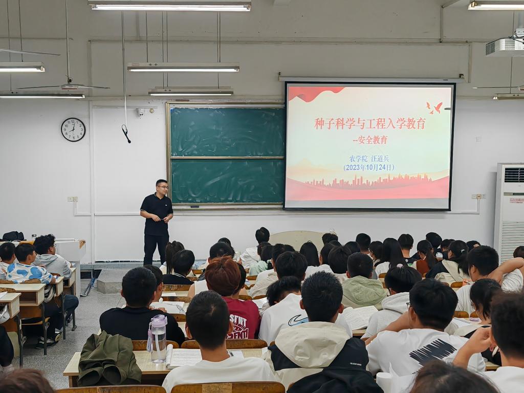 为提升学生的自我保护能力和风险防范意识,营造安全和谐的校园环境,10月24日晚上,农学院在求知楼A102召开大学生安全教育主题班会,主题班会由农学院专职辅导员汪道兵主讲。