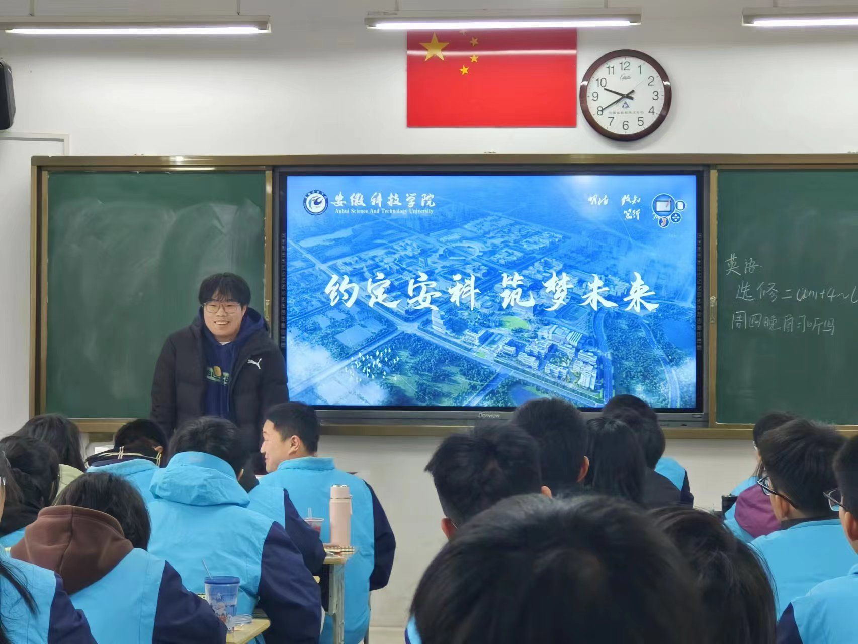 为扩大我校在省内中学知名度与影响力,让更多的高中生认识安科、心向安科,2024年1月23日,农学院种子科学与工程233班万子翔实践团队来到安徽省霍山中学开展“我回母校报喜讯”2024寒假社会实践专项活动。