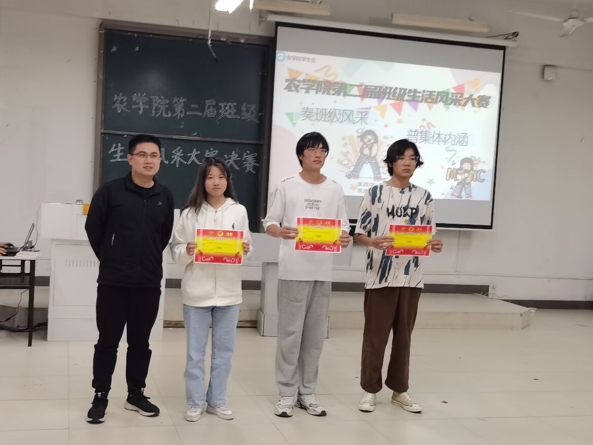 为展现农学院的班级风貌,丰富同学们课余文化生活,5月15日,农学院于新知楼A102举办第十二届“金禾工程”系列活动之班级生活风采大赛决赛,9支班级代表队经过初赛选拔晋级进入现场决赛,资源与环境学院教师张官进、权玲,农学院专职辅导员汪道兵受邀出席本次比赛并担任评委。