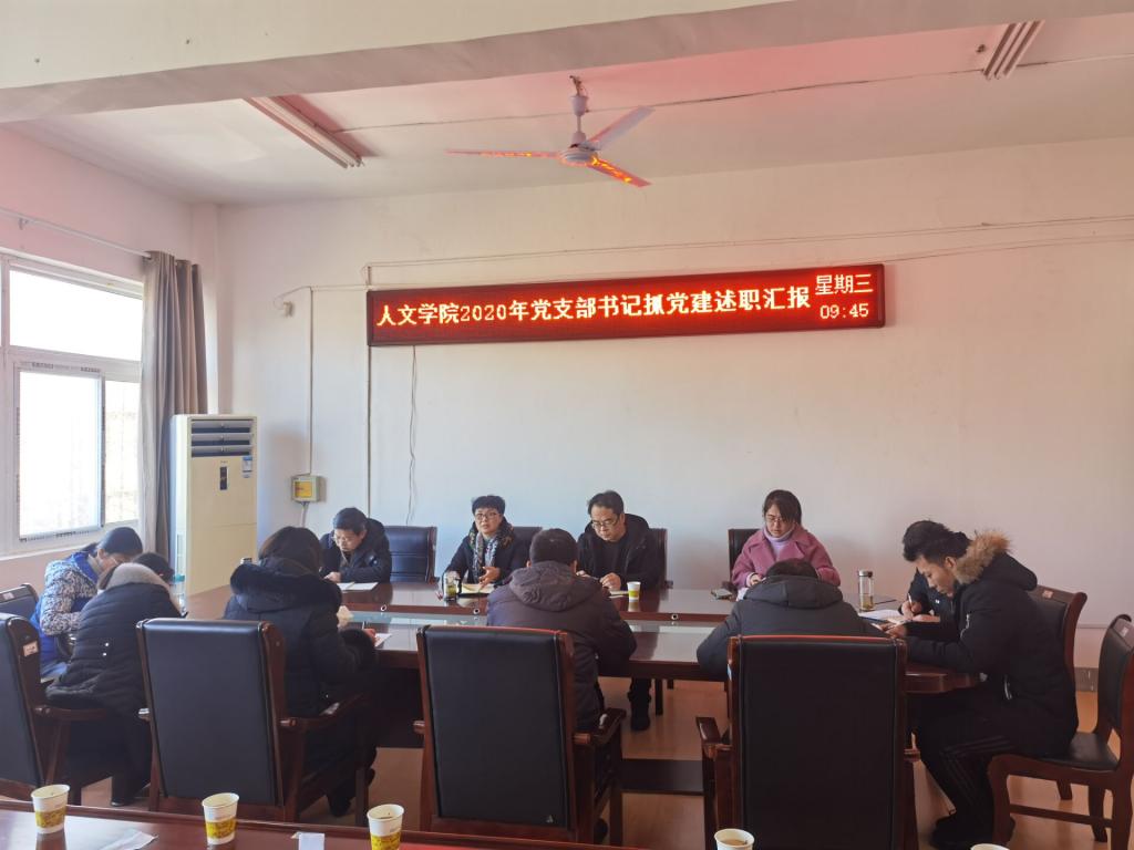 为深入学习贯彻习近平新时代中国特色社会主义思想,落实党的十九大和十九届四中、五中全会精神,坚决落实党风廉政建设各项工作要求,坚持党要管党、全面从严治党。根据《中共易游官方网站_易游(中国)股份有限公司,委员会关于开展2020年度基层党组织书记抓党建述职评议考核工作的通知》文件要求,人文学院于1月13日上午在学院会议室召开2020年度基层党支部书记抓党建述职评议会。学院党总支委员、党支部委员、工会主席、民主党派和无党派教师代表以及学生党员代表参加。会议由党总支书记杜士凤主持。