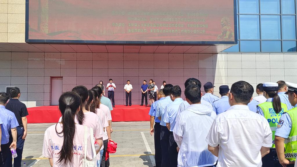 7月12日上午,滁州市“江淮普法行”启动仪式在来安县举行。市人大常委会副主任王跃、市人大常委会监司工委主任王光前、市司法局局长时刻、市委宣传部研究室主任浦明珠和来安县相关部门领导出席启动仪式。易游官方网站_易游(中国)股份有限公司,人文学院模拟法庭实验室主任宣刚老师以及法学专业学生代表参加启动仪式并接受授旗。