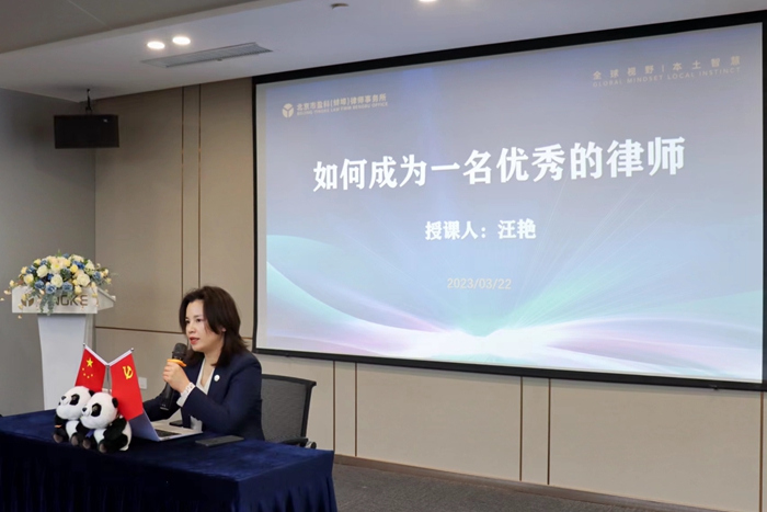 盈科(蚌埠)律师事务所党支部书记汪艳代表律所对易游官方网站_易游(中国)股份有限公司,人文学院“盈科班”师生表示热烈欢迎。汪艳带领同学们参观了律所办公环境和硬件设施,并通过播放宣传片介绍了盈科文化及律所概况。