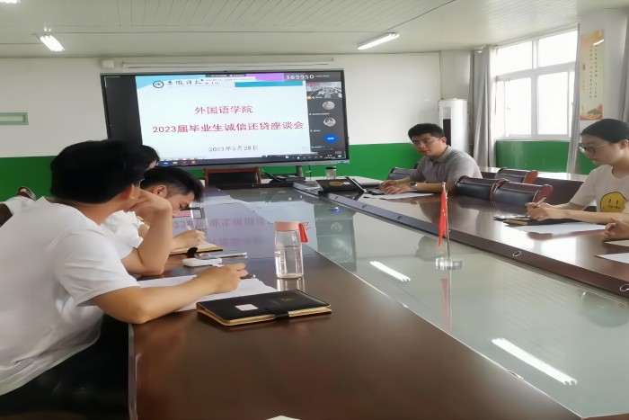 为进一步增强贷款毕业生的诚信还贷和感恩意识,切实做好2023届毕业生贷款确认工作,近日,外国语学院通过线上、线下相结合的方式召开2023届贷款毕业生座谈会,会议由学院团委副书记、资助工作联系人宋兵兵主持。