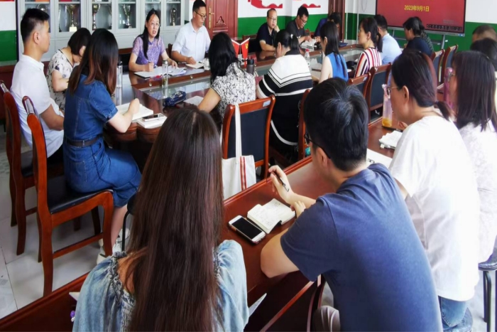 2023年9月1日,新学期伊始,外国语学院MTI硕士点建设团队在学院会议室召开MTI硕士点建设推进会,部署新学期的各项工作。会议由外国语学院分管副院长邓兆红主持,外国语学院院长刘萍、副院长洪民出席并指导工作。