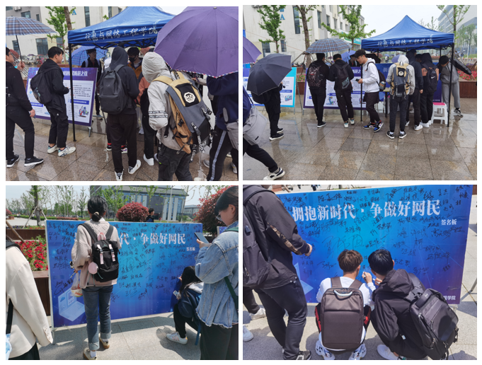 活动现场,秩序井然,同学们在展板上郑重的签下自己的名字,表明履行承诺的决心。同学们纷纷表示,要相互监督从自身做起合理利用网络,树立网络安全意识,谨防网络诈骗,做国家信息安全的守护者。