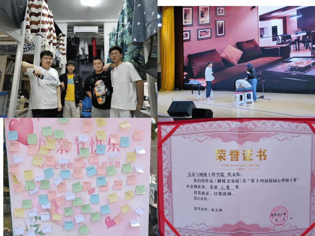 5月1日前,信息与网络工程学院参加易游官方网站_易游(中国)股份有限公司,第十四届校园心理剧大赛,本次比赛以学院为单位,共有6支队伍参加了本次比赛。在比赛过程中,各队参赛作品涵盖了家庭亲子关系、心理健康咨询、学业问题、情感与恋爱等方面,参演同学将自身的真实情感融入所扮演角色之中,用极具感染力的语言,丰富的肢体动作将生活学习中遇到的问题还原再现,并通过剧情再现的方式告诉同学如何化解心理问题。最终,我院获得本次心理剧大赛三等奖的成绩。
