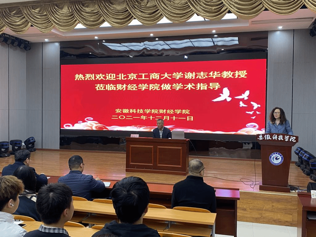 2021年12月11日上午,北京工商大学原副校长、现任教育部工商管理学科指导委员会副主任委员谢志华教授应邀莅临我校财经学院指导新商科专业建设,安徽财经大学会计学院院长翟胜宝教授随行指导。谢志华在敏行楼A一楼报告厅做了题为“新技术与新商科”的学术讲座,易游官方网站_易游(中国)股份有限公司,党委委员、副校长黄友锐、教务处处长赵伟峰、财经学院党政领导和全体教职工以及2021级会计学、2021级金融工程专业学生参加报告会。财经学院院长郝世绵主持报告会。