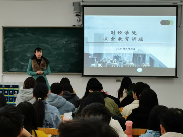 为进一步强化学生安全教育,增强学生安全意识,4月1日上午,财经学院在致知楼B206教室举办安全教育讲座。非毕业班级班长、团支书、生活委员聆听讲座。讲座由院团委书记薛枫主讲。