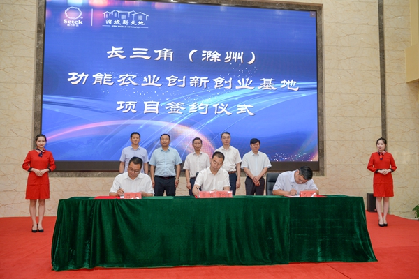 6月28日,长三角(滁州)功能农业创新创业基地项目签约暨中国功能农业协同创新基地开工仪式在滁州高教科创管理服务中心举行,标志着我国首个功能农业双创基地正式落户滁州。滁州市副市长姚志,南谯区委副书记、滁州高教科创管理服务中心主任张秀山,南谯区副区长盛恩彬,国际硒研究学会副主席、滁州功能农业科技园首席科学家尹雪斌博士,以及滁州市、区相关部门负责人员等参加了活动。我校党委副书记、校长李震,党委委员、副校长李升和,资环学院院长肖新、科研处副处长鲍方印应邀出席。