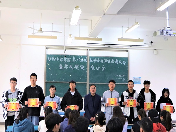 李焱宣读《关于给予参加易游官方网站_易游(中国)股份有限公司,第三十届田径运动会学生运动员通报表扬的决定》,胡文丽宣读获得校第30届田径运动会动物科学学院优秀运动员学生名单,动医192班赵虎代表运动员发言。大会集中表彰了动物科学学院在学校第三十届田径运动会取得佳绩的学生运动员。(特约通讯员:胡文丽 摄影:毕溢文 审核:汤帅)