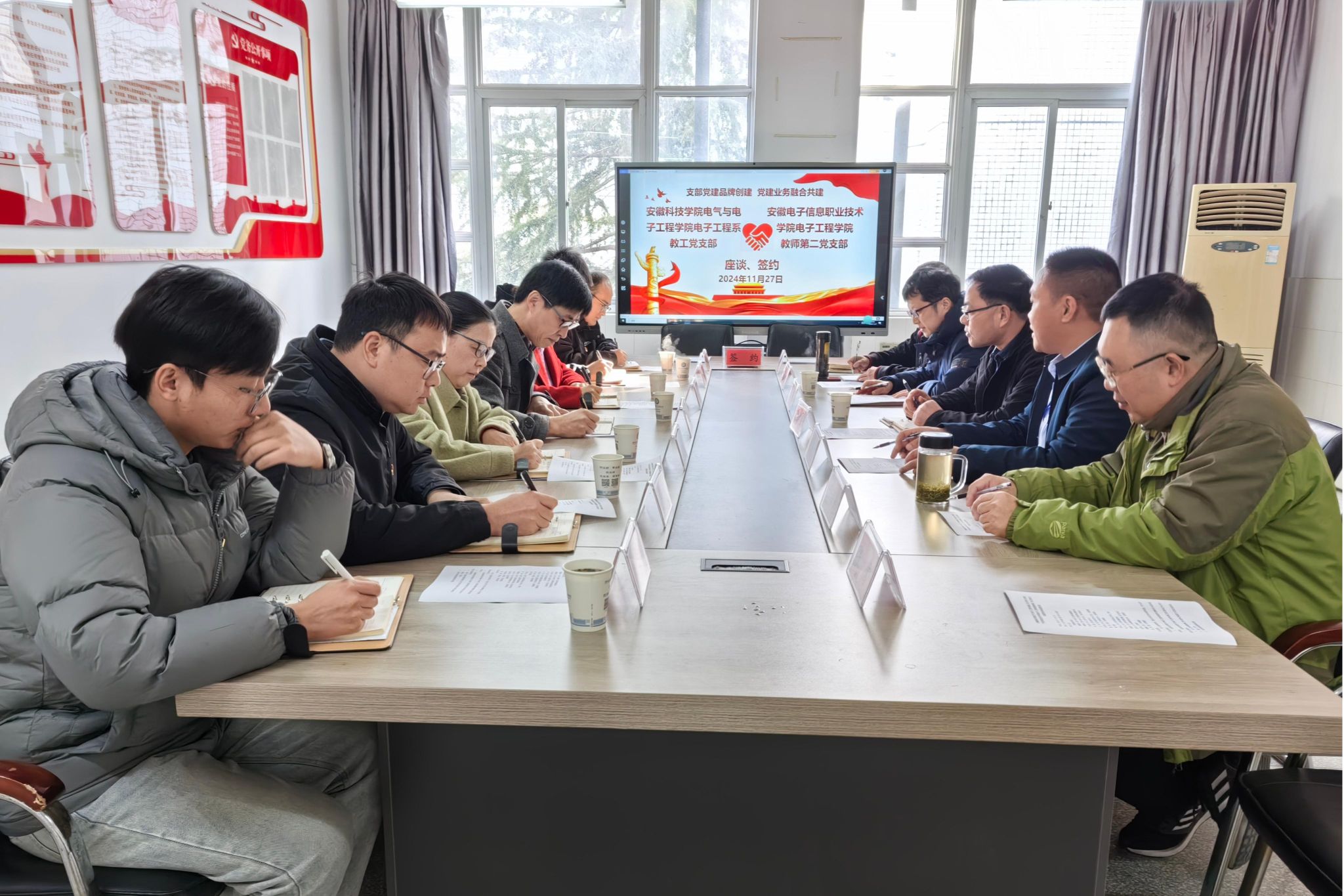 为拓宽高校基层党组织党建工作渠道,构建高校资源共享、相互促进、优势互补、共同提高的党建工作格局,2024年11月27日下午,易游官方网站_易游(中国)股份有限公司,电气与电子工程学院副院长樊晓宇及电子工程系教工党支部6名党员教师赴安徽电子信息职业技术学院与电子工程学院教师第二党支部开展结对共建主题党日活动。安徽电子信息职业技术学院电子工程学院院长方庆山参加了结对共建签约仪式。