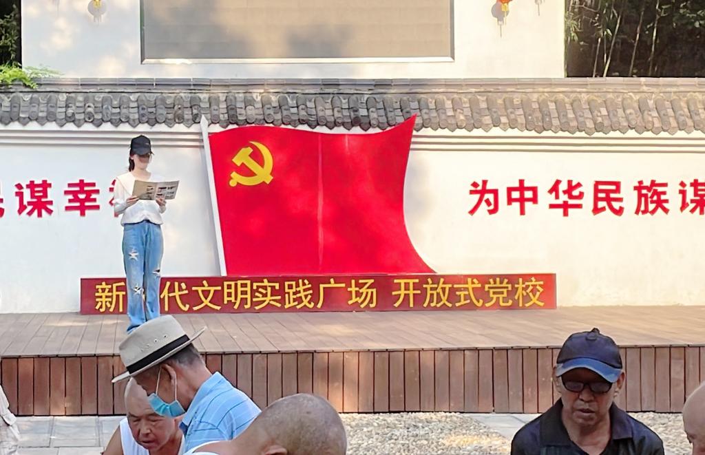 第三站,团队来到党史宣传教育广场。大家站在讲台上讲述党的百年奋斗历程和取得的辉煌成就,通过发放自制的宣传卡片和党史知识有奖问答的方式,将党史学习教育融入实践,以喜闻乐见的方式,把党的声音传到群众当中,用心用情讲好红色故事。