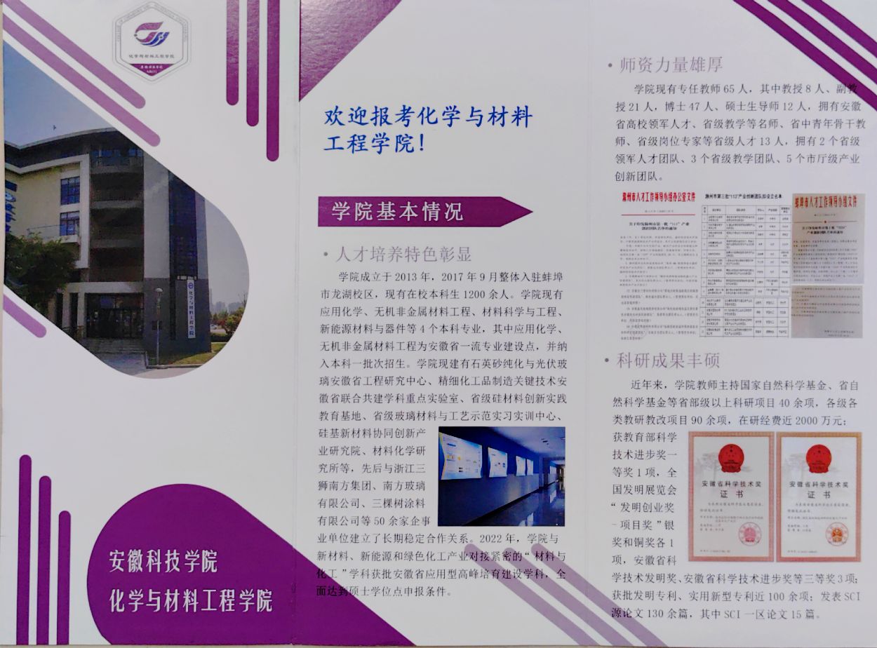 为积极应对新旧高考志愿填报模式转变可能带来的生源质量变化挑战,化学与材料工程学院在高质量完成学校下达的招生宣传任务基础上,学院还制作了“欢迎报考易游官方网站_易游(中国)股份有限公司,化学与材料工程学院”H5易企秀,组织师生利用微信群、QQ群宣传;学院印制了“欢迎报考化学与材料工程学院”纸质宣传册子,随同学校的宣传材料一并发放,主动向有化学及材料类报考意愿的考生及家长介绍学院,吸引考生关注学院。