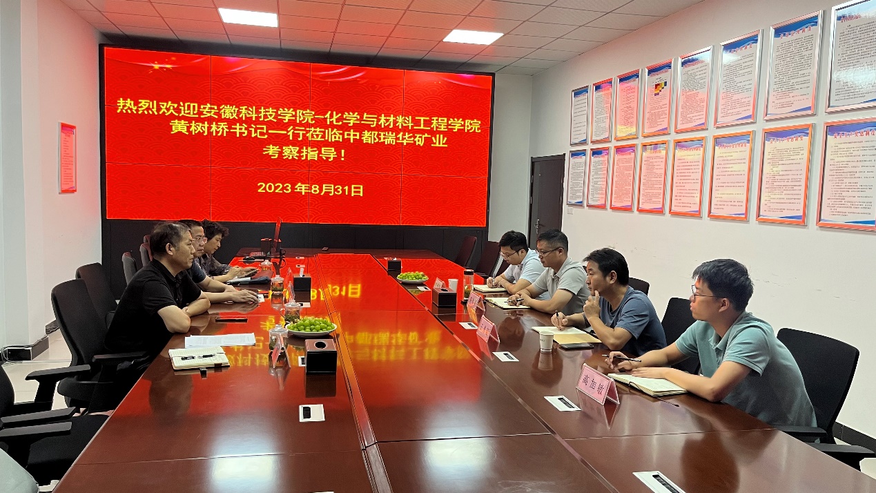 为进一步推动产学研合作,促进科技成果转化,8月31日下午,化学与材料工程学院党委书记黄树桥、安徽省石英砂纯化和光伏玻璃工程研究中心(筹)主任汪徐春教授等一行4人应邀前往滁州中都瑞华矿业发展有限公司洽谈合作,受到公司总经理荚德军一行热情接待。