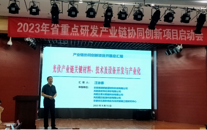 根据《安徽省科技计划项目管理办法(试行)》(皖科党〔2023〕3号)文件的要求,为了进一步加强产业链协同创新项目的管理,安徽省科技厅经过研究决定在滁州召开本市承担的2023年度省重点研发计划高新领域产业链协同创新专项项目启动会。9月16日上午,安徽省石英砂纯化和光伏玻璃工程研究中心(筹)主任汪徐春教授等4人受邀前往滁州市科创中心参加了此次会议。