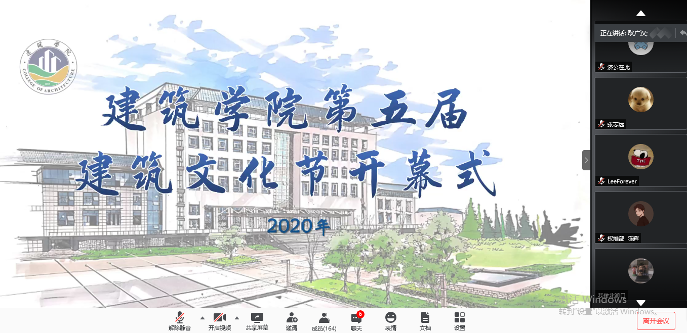 为进一步激发学生专业学习兴趣,丰富疫情防控期间居家学生的文化生活,5月26日晚,建筑学院第五届建筑文化节在“云端”开幕。建筑学院分团委书记耿广汉,辅导员沈德艳、阮怀思,院团委、学生会干部,各班级班长出席会议。会议由沈德艳主持。