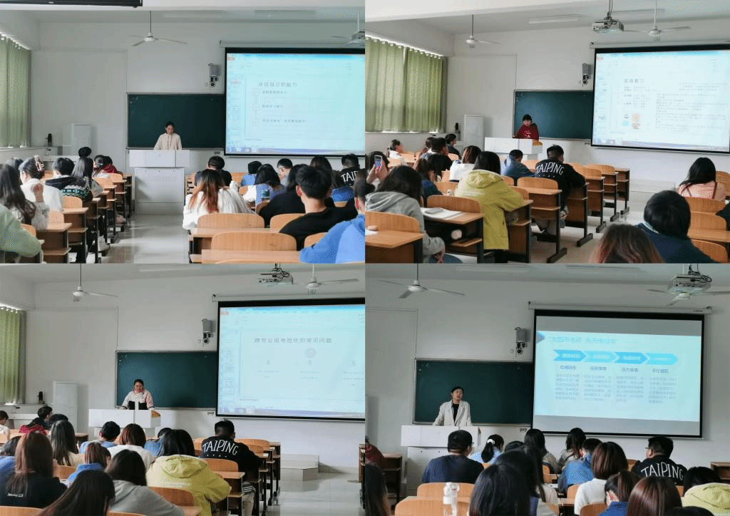 四位同志分别结合自身的考研考公经历向同学们详细地介绍了备考期间应注意的问题,分享了自身考研考公的经验,希望同学们正确认识自己,选择一条适合自己的道路,不留遗憾,奋力拼搏。现场答疑环节,同学们踊跃提问,党员同志们认真答疑解惑,帮助同学们解决备考过程中出现的小困惑小疑问,并热心地留下自己的联系方式,以便在今后的学习生活中进一步关心帮助学弟学妹们的成长。