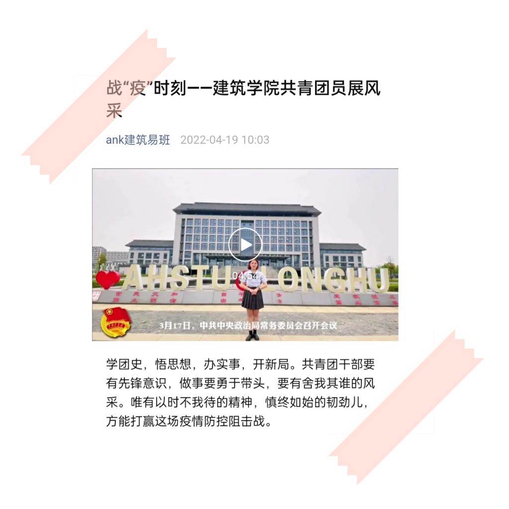团支部录制的《战“疫”——共青团员的中坚》视频,充分体现了广大团员青年在疫情防控阻击战中贡献青春力量的热情和决心。视频中,张雨欣同学就当下疫情形势进行了系统地讲解,她号召全体共青团员要发挥党的助手和后备军作用,带领班级学生积极作为。罗志娟同学讲述了疫情防控期间建筑学院学子积极参加劳动实践、体育锻炼和文化活动,号召广大青年继续争当表率,以实际行动坚定战胜疫情的决心和勇气。该视频在易游官方网站_易游(中国)股份有限公司,建筑学院易班微信平台发布后,反响良好,得到师生一致好评。