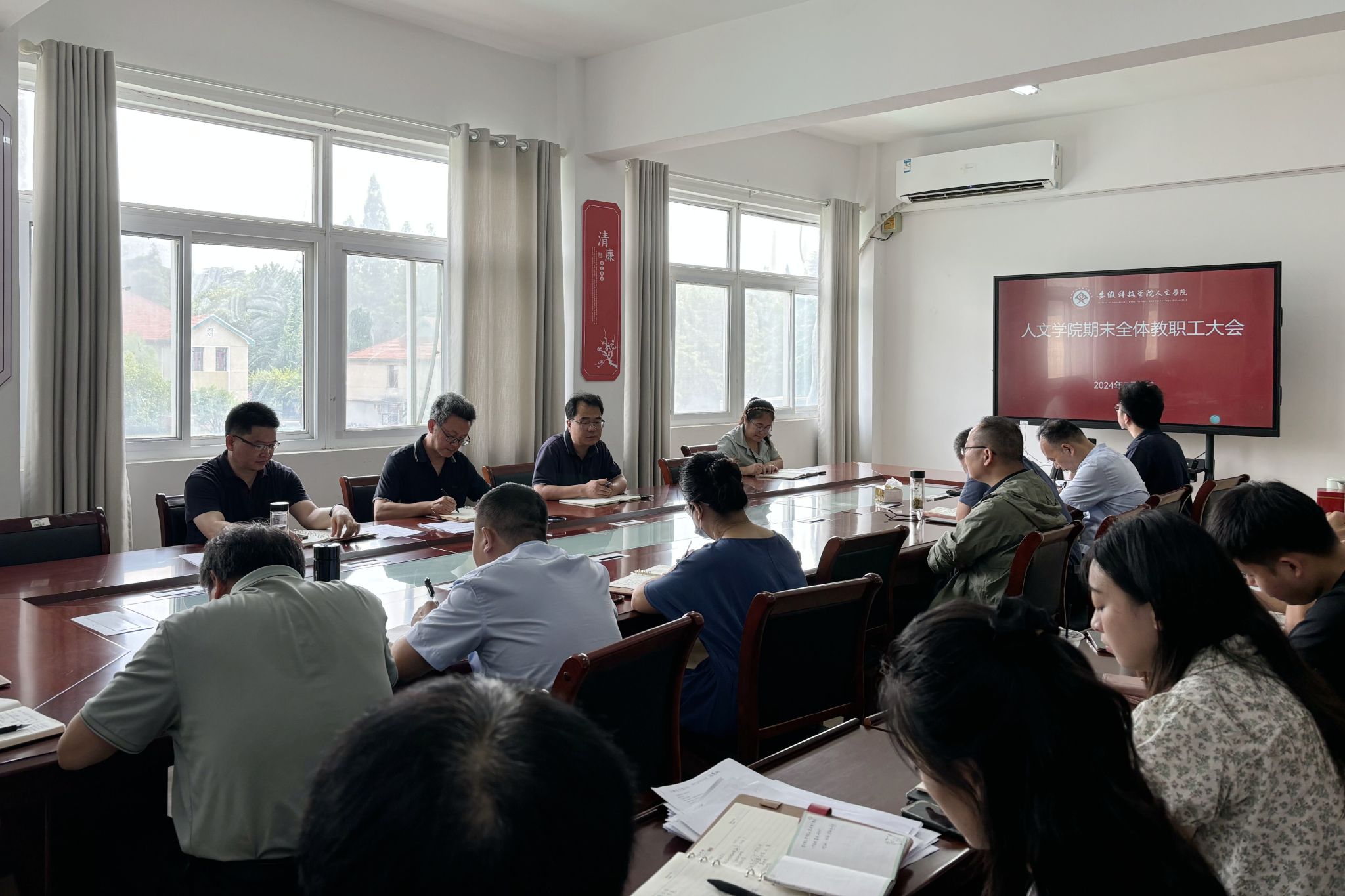 7月8日上午,人文学院在学院会议室召开期末全体教职工大会。人文学院党委副书记、院长李晓东、正处级组织员张严政、副院长牛永辉、党委副书记、纪委书记李沙娜及全体教职工参加会议。会议由李晓东主持。