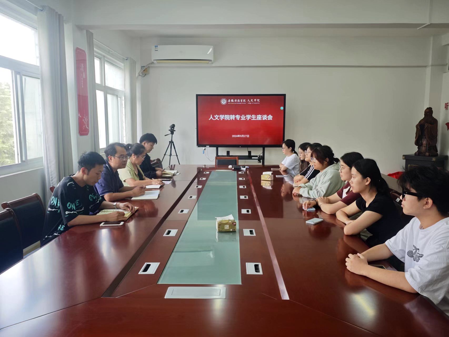 为帮助转专业学生尽快了解新专业、适应新环境,9月28日中午,人文学院在学知楼324会议室召开2024年秋季学期转专业学生座谈会。学院党委副书记、院长李晓东、党委副书记李沙娜、2023级辅导员及全体转专业学生参加。会议由学院团委副书记焦雪松主持。