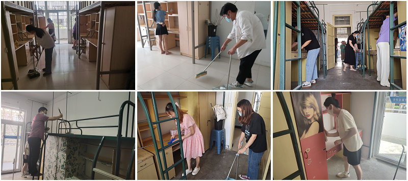 志愿服务队分成六个小组,每组由一名老师带领。大家自带清洁工具,按照工作分工,分赴三栋新生宿舍开展卫生清扫工作。清扫过程中,党员同志们不怕脏累,勇争先锋,以饱满的热情和积极的状态投入到劳动过程中,清理床铺、整理桌台、清扫地面、擦拭门窗,不落下任何一间宿舍,不留下任何一个死角。在同学们的共同努力下圆满地完成了这次大扫除活动,新生宿舍面貌焕然一新。在打扫卫生的同时,大家认真排查宿舍存在的安全隐患和设施是否完好等问题,及时汇总上报。