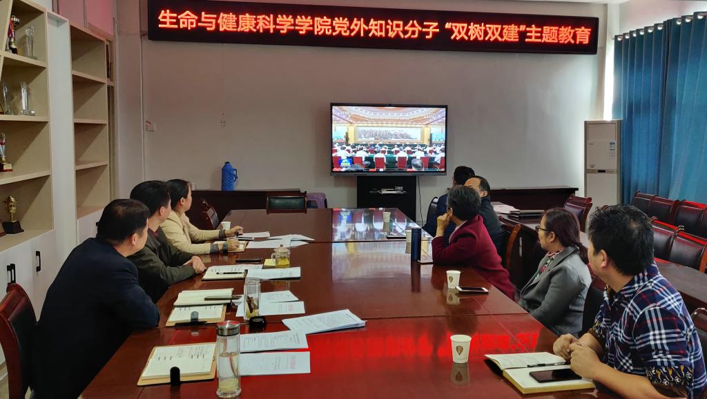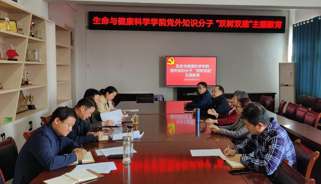 10月12日下午,生命与健康科学学院在学院会议室开展2022年度党外知识分子“双树双建”主题教育活动。学院党委书记詹学文,党委副书记、副院长(主持工作)孙玉军,党委副书记、纪委书记彭丽萍,党委委员、副院长钱立生和学院全体党外知识分子参加活动,活动由詹学文主持。
