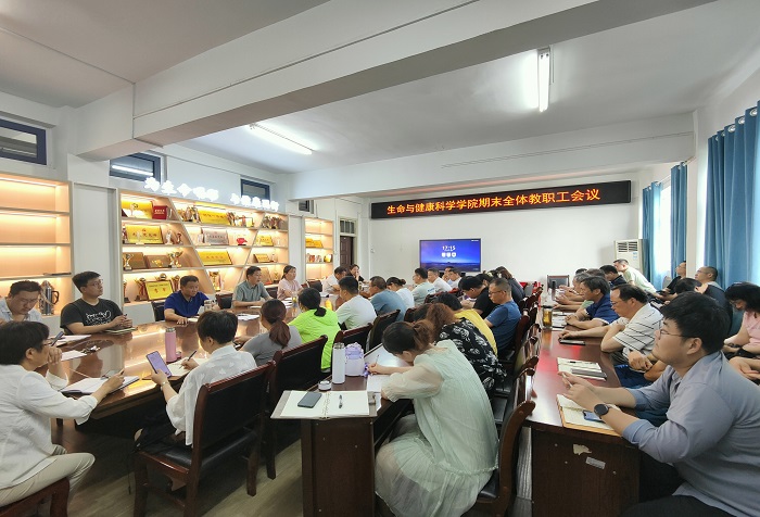 6月28日下午,生命与健康科学学院在学院会议室召开期末全体教职工会议。学院党政领导和全体教职工参加会议,会议由学院党委副书记、副院长(主持工作)孙玉军主持。