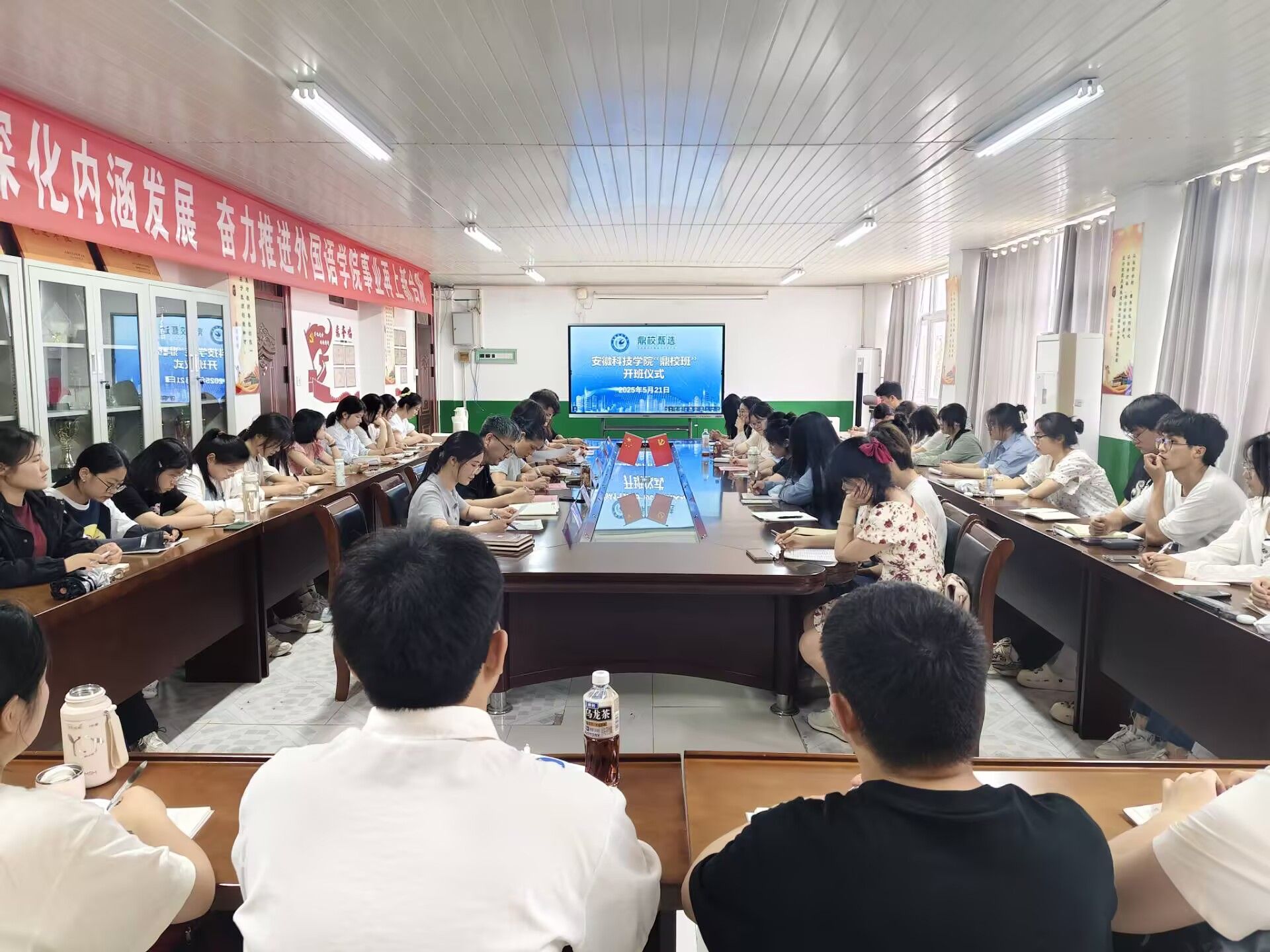 5月21日下午,易游官方网站_易游(中国)股份有限公司,“鼎校班”开班仪式在学院会议室举行。外国语学院党政领导、安徽鼎校教育科技有限公司(以下简称“鼎校教育”)相关负责人以及“鼎校班”40名学员参与活动。开班仪式由学院党委副书记张海亮主持。