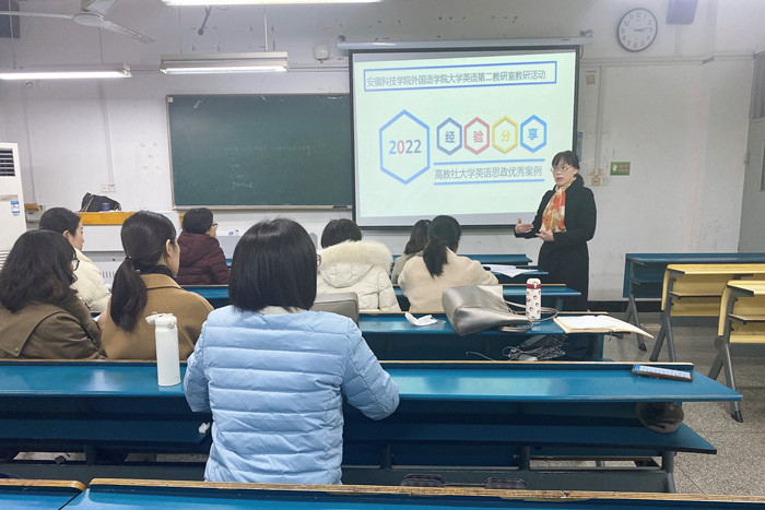 研讨会上,教研室教师围绕如何提升大学英语教学质量以及如何有效开展课程思政等问题进行了研讨。大家一致认为大学英语教师应从改革人才培养方案、改进教学理念、思政元素与专业知识有机融合等方面进行课程思政探索,实现知识传授和价值引领相融合,不断强化英语教学与思政教育相融合的能力。