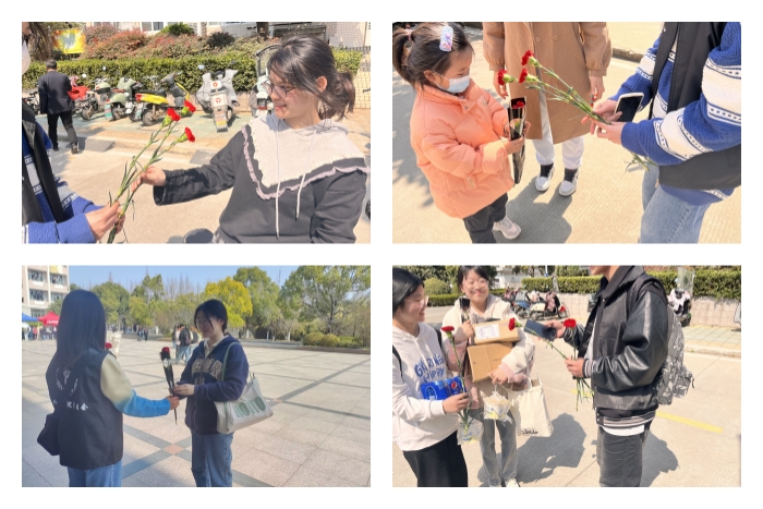 “春天一枝花”活动,共发放鲜花60支,送出祝福60条,展现了我校女大学生的青春热情,为校园文化增添了一道靓丽的风景线,打造更和谐友好的校园氛围。(特约通讯员:陈慧中 摄影:程冉 审核:蔡为青)
