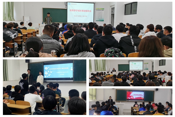 为充分发挥榜样示范作用,促进学生积极向上,10月31日下午,信息与网络工程学院举办优秀学生“责任·成才”先进事迹报告会。刘鹏宇、徐璐瑶、徐梦瑶、任思诺等十位优秀学生代表担任主讲,全体2021级新生参加报告会。