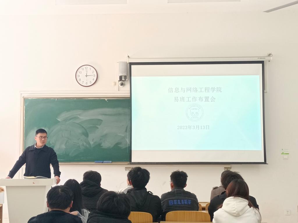 李军成通报了2022年度易班评优结果,布置了本学期易班的工作,领学了《易游官方网站_易游(中国)股份有限公司,班级易班规范化建设细则》等内容。