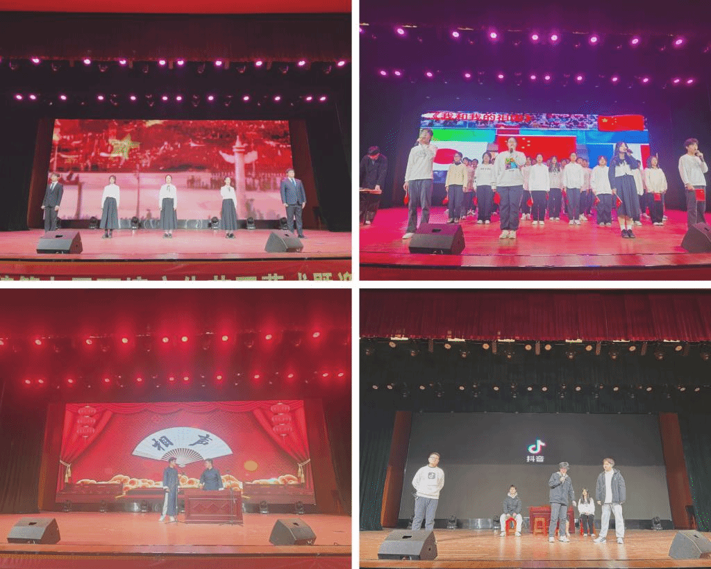晚会在大学生舞蹈协会的火热开场舞中拉开帷幕,镁光灯将整个舞台照得如同梦幻一般。现场观众迅速融入到了晚会的欢快气氛中,随之欢呼鼓掌。情景剧《时间都去哪了》,相声《大学生的消费观》,配音《甄嬛传》,合唱《我和我的祖国》等学生们精心准备的节目一一登场亮相,这些节目涵盖了歌曲、舞蹈、朗诵等方面,充分向学院领导展现了先锋学子多才多艺、自信昂扬的风采。激起在座同学们的阵阵掌声,鼓掌声经久不息。